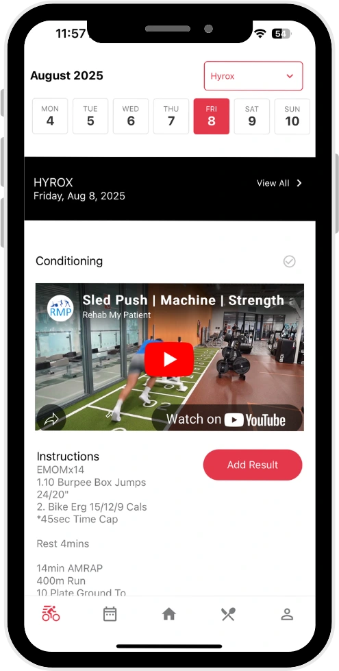Follow a professionally designed weekly plan that balances endurance, strength, and functional conditioning. Each week includes clear session breakdowns, targeted goals, and progressive load to improve fitness efficiently.